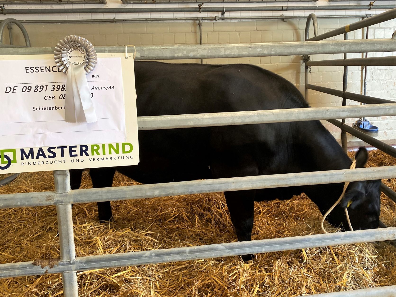 Wir konnten unsere Aberdeen-Angus Kuh Essence im Jahr 2021 aus der großen Donaumoos-Angusherde der Familie Berhanrd Delle erwerben. Essence selber wurde 2022 Reserve-Klassensiegerin mit Philipp beim Masterrind Wettbewerb in Verden. Essence hat herausragende EBV-Zuchtwerte und liegt bei den Index Values auf einem überragenden Niveau, vergleichbar mit den teuren Besamungsbullen aus USA und England. Der Terminal Index liegt bei +44 und der Self Replacing Index bei +64.