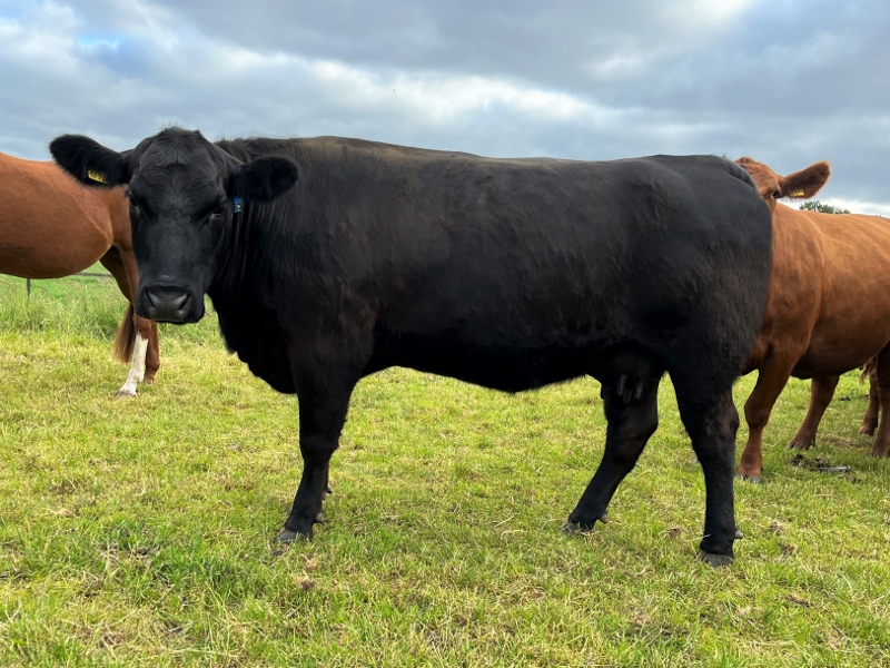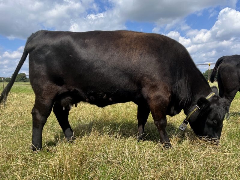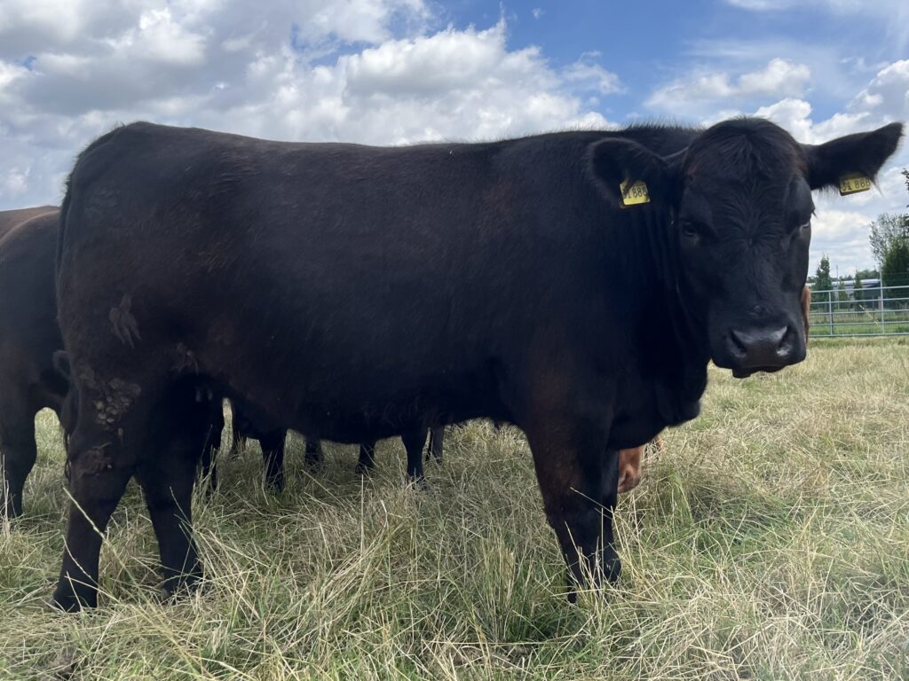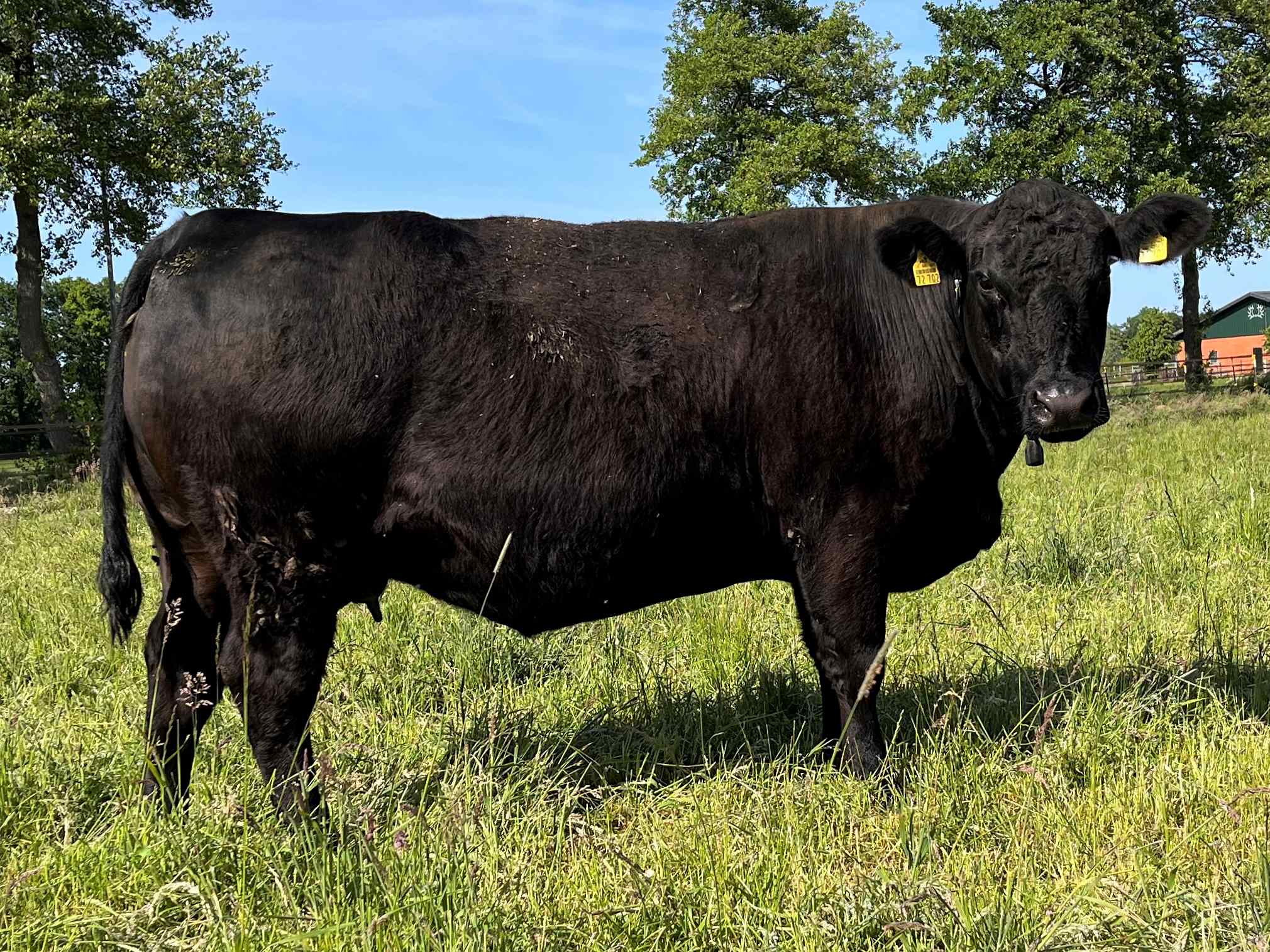 Aberdeen Angus Bulle Donaumoos Lance S366 mit SAV Ten Speed und AAR Ten X im Pedigree vererbt besondere Fleischqualität und Marmorierung. Außerdem eine ausgeprägte Leichtkalbigkeit sowie gute Zunahmen und eine verkürzte Trächtigkeitsdauer durch DHD Traveler und der Basin Lucy Linie.