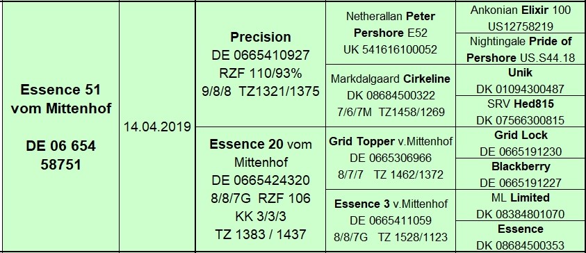 • Zuchtstamm: E – Essence vom Mittenhof (AA)