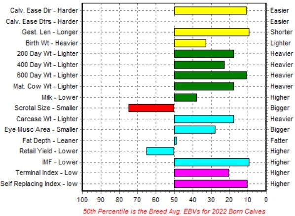 EBV’s (Estimated Breeding Values) sind geschätzte Zuchtwerte für Herdbuch Angus-Rinder. Mit Hilfe der EBV Werte lassen sich Tiere gut mit der gesamten Population vergleichen. Die Daten zu den Tageszunahmen, Milchmenge, Schlachtgewichten, Marmorierung, etc. werden unter standardisierten Bedingungen erfasst. Diese EBV Werte werden in bestimmten Maßeinheiten als positive oder negative Zahl dargestellt.