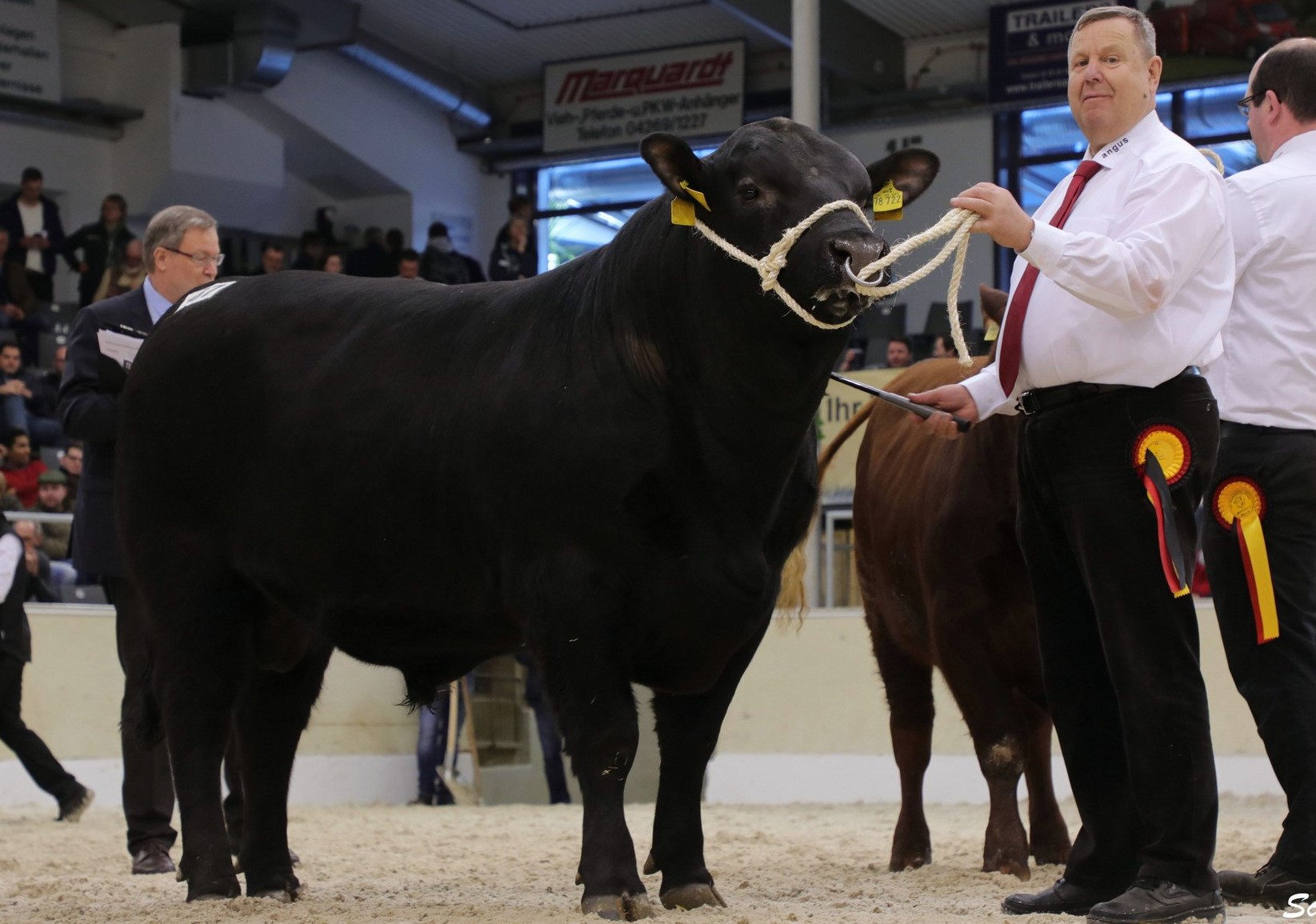 Brazils Bruder Gerry war der Champion aller Rassen der Sächsischen Bullenauktion 2020. Der 8-8-8 gekörte lackschwarze Angus-Bulle Gerry aus dem Lehr- und Versuchsgut Köllitsch überzeugte die Kommission durch sein hervorragendes Gesamterscheinungsbild sowie auch seine hochpositiven Leistungsdaten.